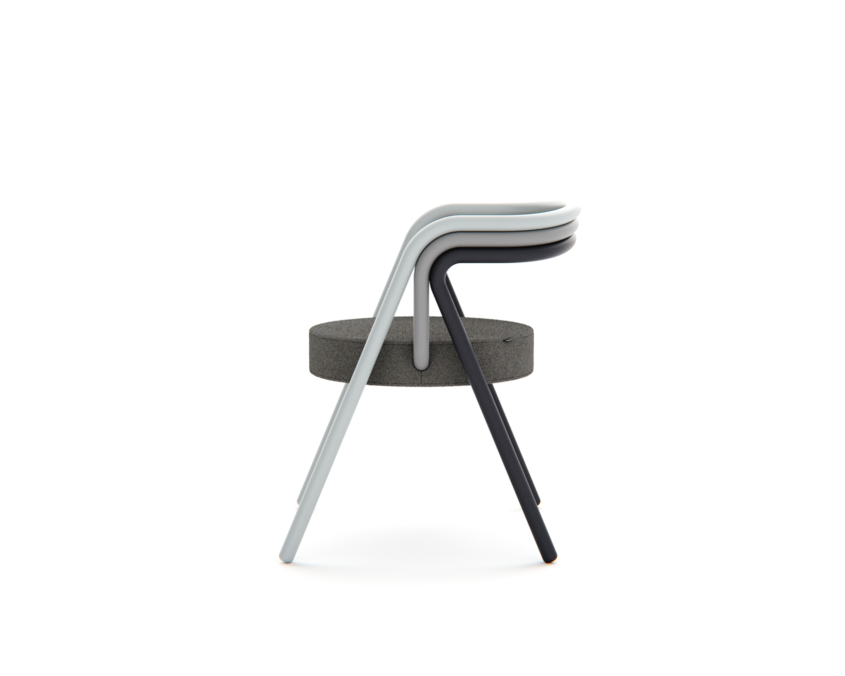 By chance, I was sketching this chair concept, three poles that begin as one and then 'fray' into legs and seat support, and it felt like the perfect canvas for exploring complementary and contrasting colourways. The structure naturally invites rhythm and variation, making it an ideal piece to experiment with bold colour interactions.