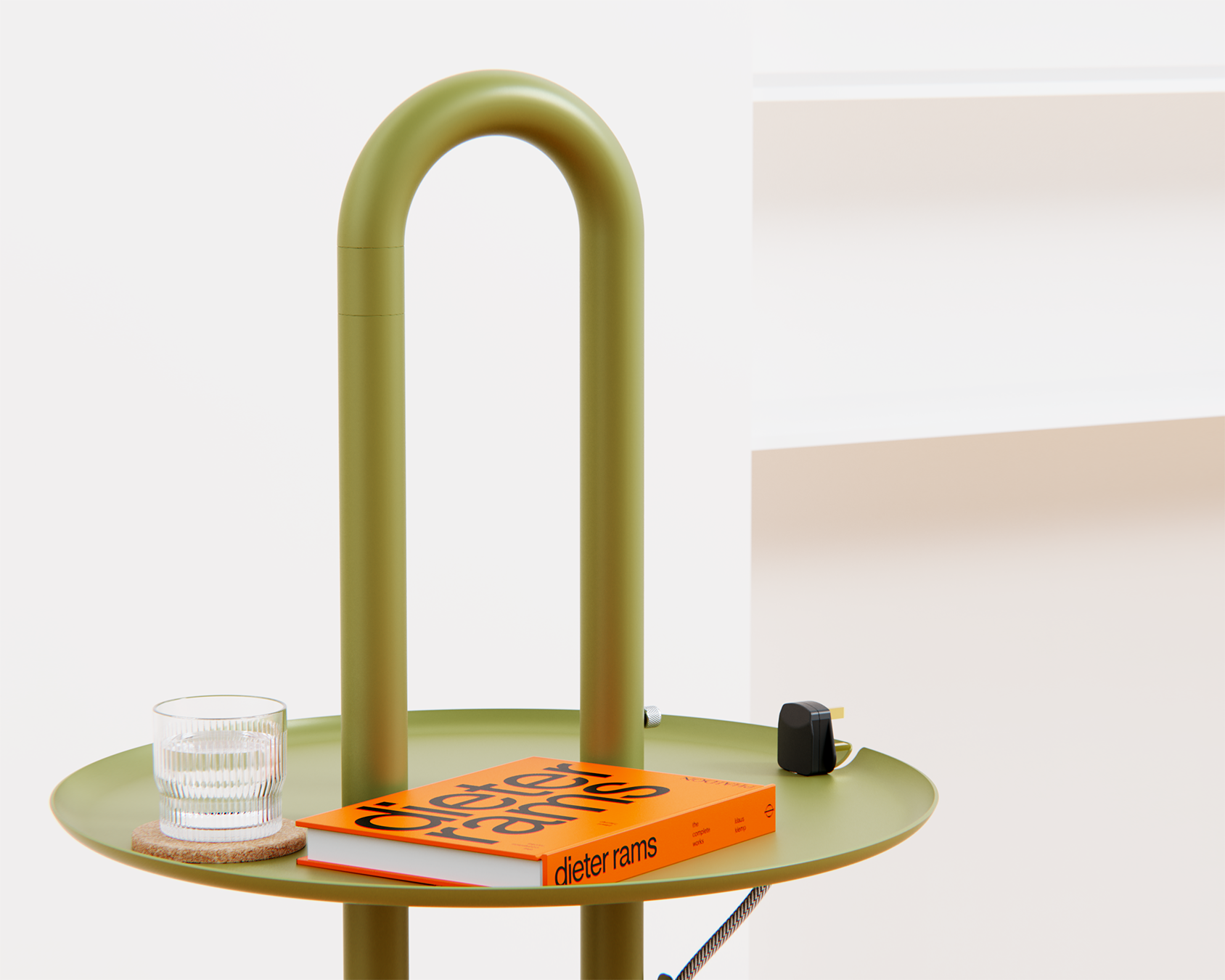 Grab & Glow is a portable side table with a clever twist. Its legs pass through the tabletop to form a single handle, making it easy to grab, lift, and go.